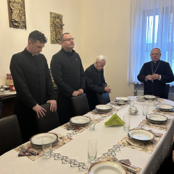 Duszpasterz spotkał się z kapłanami dekanatu Stargard-Wschód. Spotkanie przy betlejemskim żłobku, kolędy i konferencja ascetyczna, zostało dopełnione wspólnym posiłkiem.